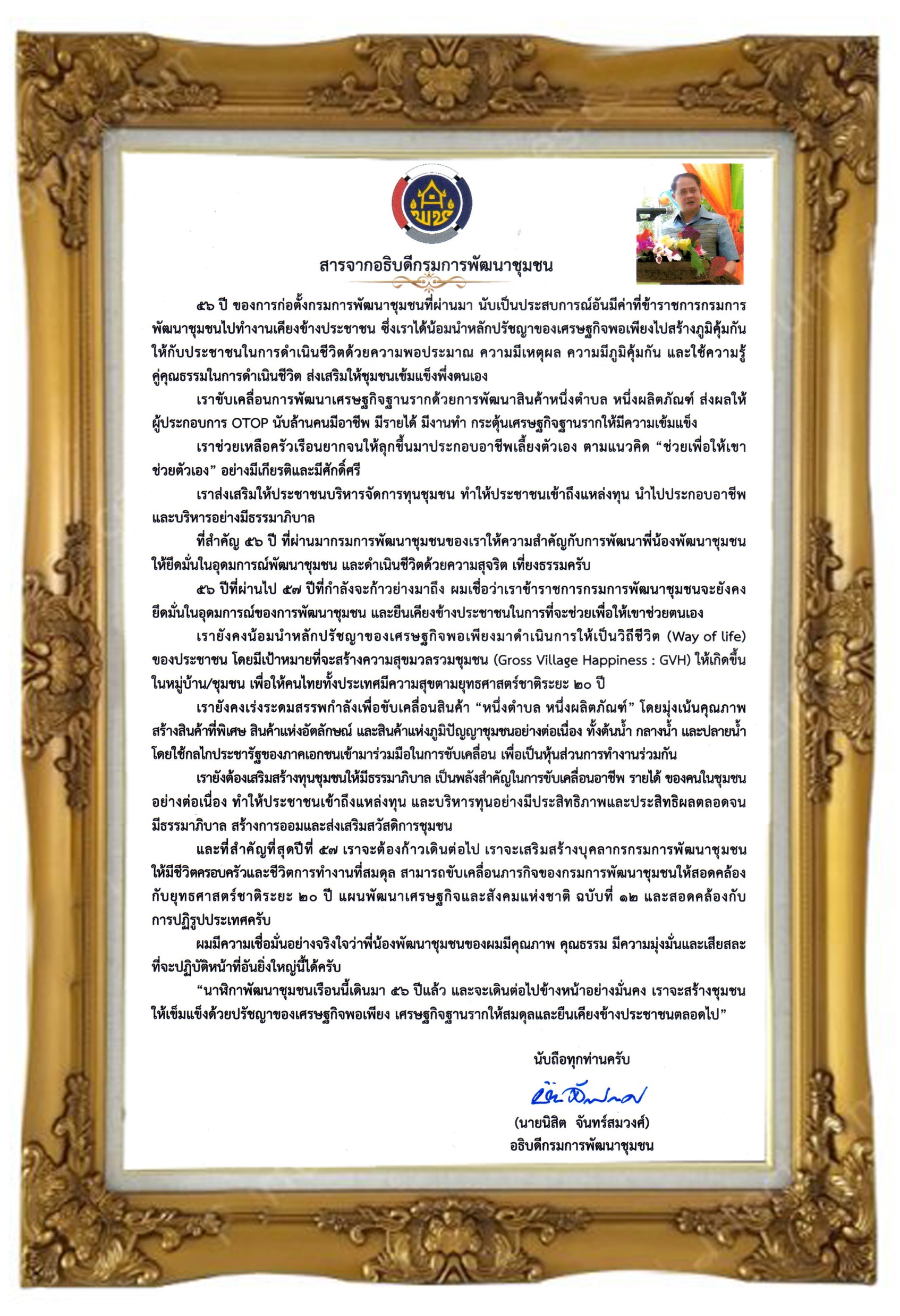 สารจากอธิบดีกรมการพัฒนาชุมชน 1 ตุลาคม 2561