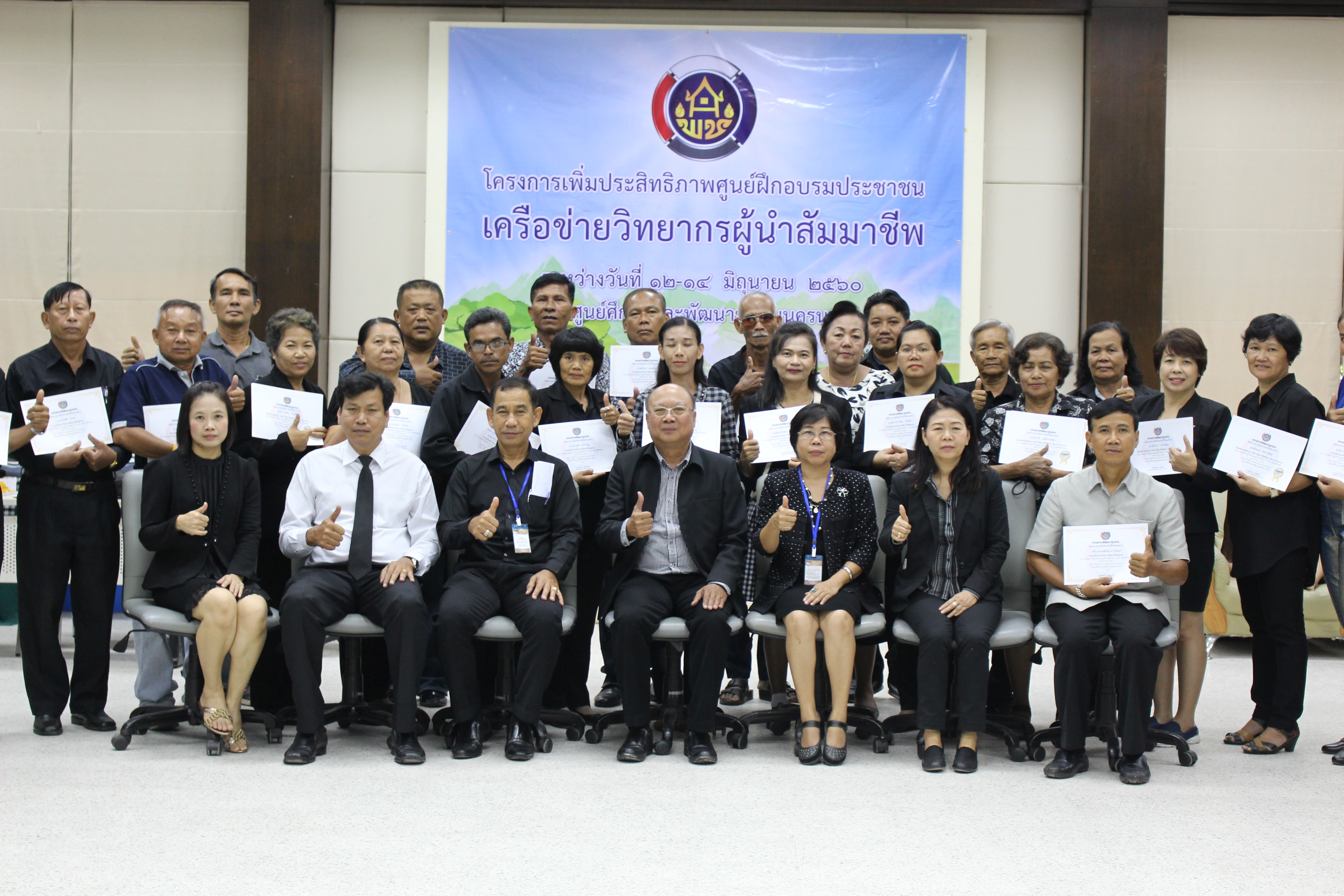 โครงการเพิ่มประสิทธิภาพศูนย์ฝึกอบรมประชาชน เครือข่ายวิทยากรผู้นำสัมมาชีพ ระหว่างวันที่ 12-14 มิถุนายน 2560ณ ศูนย์ศึกษาและพัฒนาชุมชนนครนายก