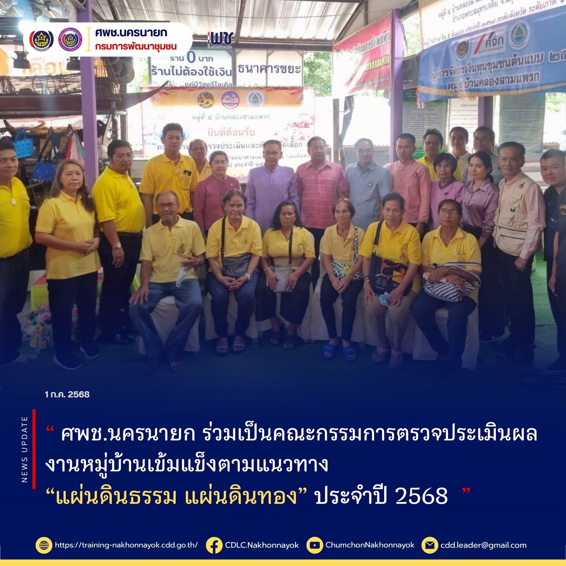 ศพช.นครนายก ร่วมเป็นคณะกรรมการตรวจประเมินผลงานหมู่บ้านเข้มแข็งตามแนวทาง “แผ่นดินธรรม แผ่นดินทอง” ประจำปี 2568