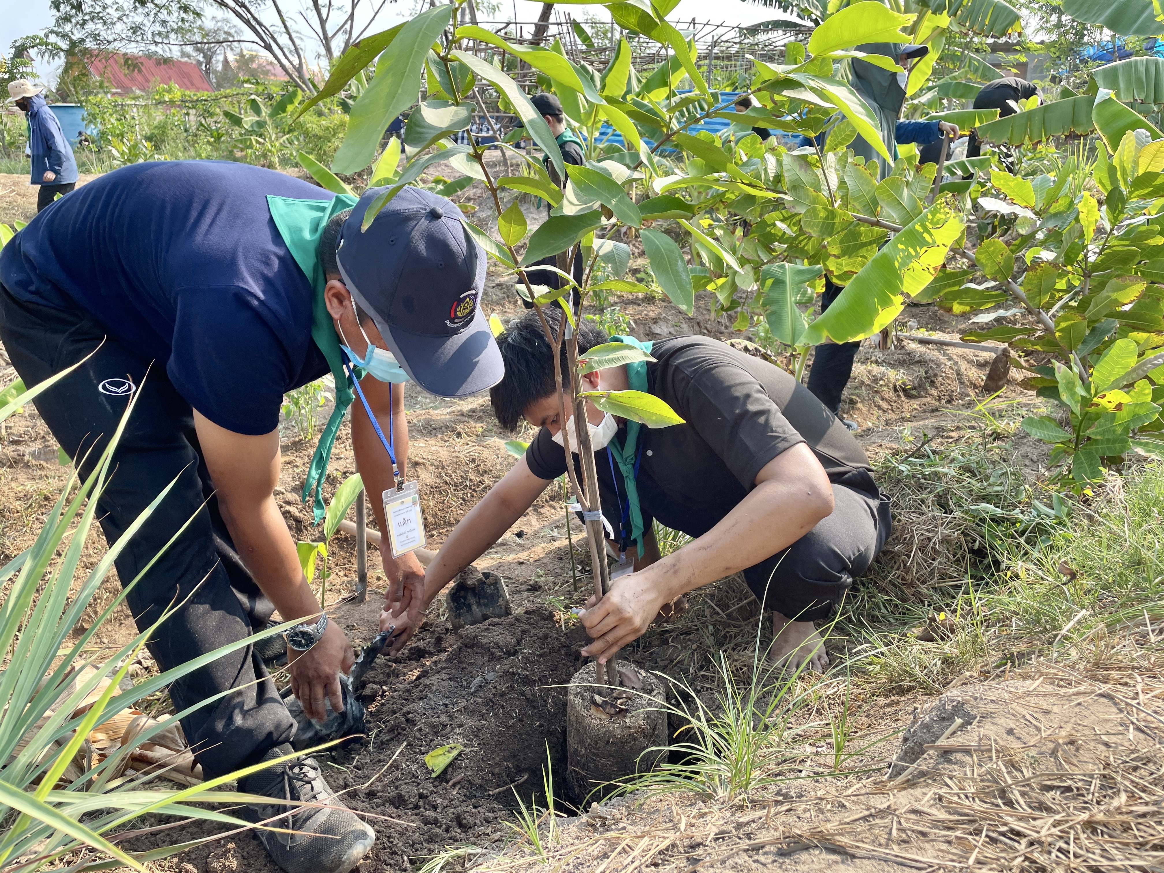 ช่วงเช้า ฝึกปฏิบัติ “จิตอาสาพัฒนาชุมชนเอามื้อสามัคคีพัฒนาพื้นที่ตามหลักทฤษฎีใหม่” ผู้เข้าอบรมลงมือปฏิบัติในพื้นที่จริง กับการเอามื้อสามัคคี พัฒนาพื้นที่ตามหลักทฤษฎีใหม่ โดยร่วมกันออกแบบพื้นที่ “โคก หนอง นา ” บริหารจัดการดิน น้ำ ป่า ตามบริบทพื้นที่ ที่กลุ่มสีได้รับมอบหมาย โดยมี นายสุนทร แววมะบุตร ผู้นำต้นแบบการพัฒนาคุณภาพชีวิตฯ นายอดุลย์ วิเชียรชัย ผู้นำต้นแบบการพัฒนาคุณภาพชีวิตฯ ร่วมเป็นครูพาทำร่วมกับทีมวิทยากรศูนย์ฯ ซึ่งได้ให้ความรู้คำแนะนำตลอดการปฏิบัติ หลังจากเสร็จสิ้นการ “เอามื้อสามัคคี” แต่ละกลุ่มได้ร่วมกันถอดบทเรียนที่ได้จากการทำกิจกรรม