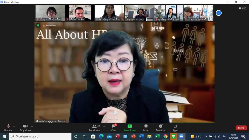 โดยมี ดร.ประไพ จรูญนารถ สมาคมการจัดการงานบุคคลแห่งประเทศไทย (PMAT) เป็นวิทยากรในการบรรยายและฝึกปฏิบัติ