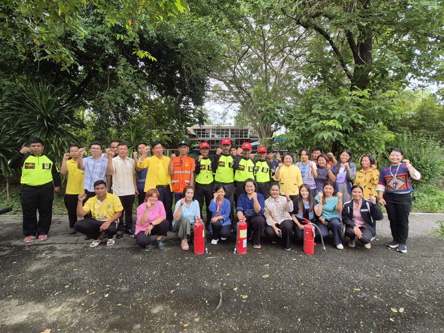กิจกรรมฝึกอบรมในช่วงบ่าย ได้เชิญทีมวิทยากรจากสำนักงานป้องกันและบรรเทาสาธารณภัย จังหวัดนครนายก มาเป็นวิทยากรให้ความรู้ในหัวข้อ การป้องกันและระงับอัคคีภัยเบื้องต้น โดยมีการให้ความรู้เกี่ยวกับการใช้ถังดับเพลิงให้ถูกต้องเหมาะสม และได้มีการสาธิตจำลองเหตุการณ์ไฟไหม้ เพื่อให้ผู้เข้าอบรมได้ฝึกปฏิบัติใช้ถังดับเพลิงในการระงับเหตุ โดยมีวิทยากรผู้เชี่ยวชาญดูแลการฝึกปฏิบัติอย่างใกล้ชิด