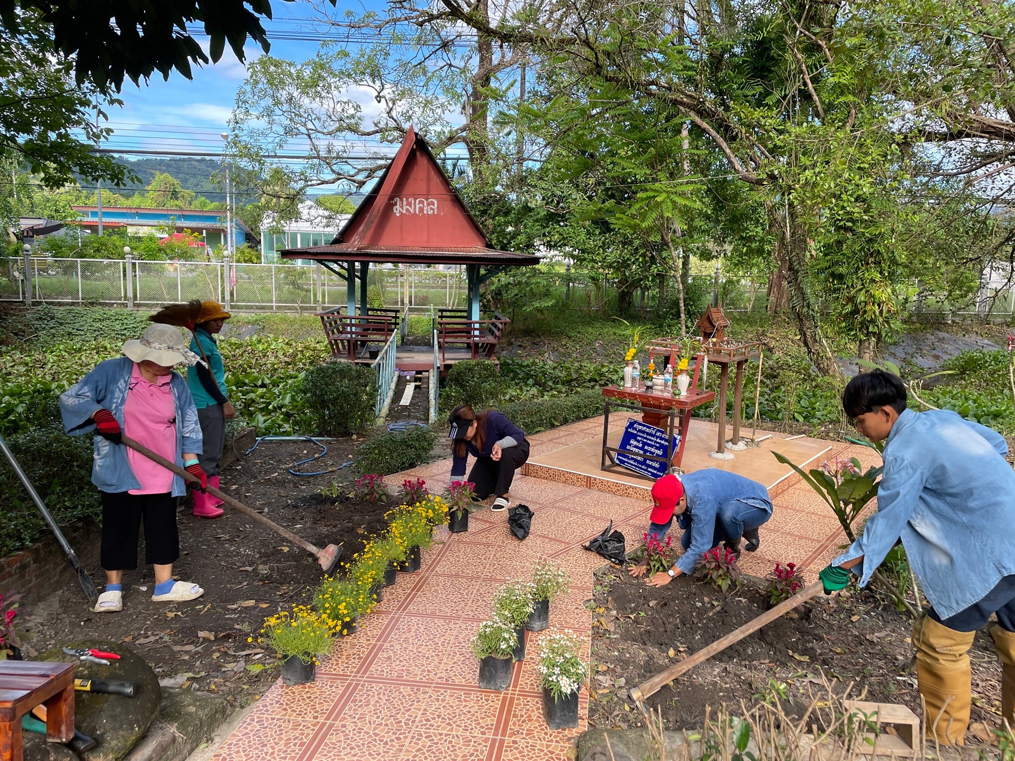 2.กิจกรรมปรับปรุงภูมิทัศน์บริเวณส่วนหย่อม ศาลตายาย สิ่งศักดิ์สิทธิ์ประจำศูนย์ ศาลเจ้าพ่อปลัดจ่าง ตัดหญ้า ปรับพื้นที่รอบๆ ให้สะอาด เป็นระเบียบเรียบร้อย สวยงาม