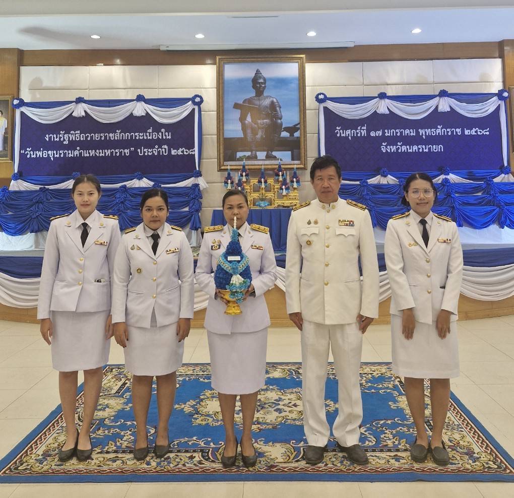 นางสาวณัฐนิช อินทสระ ผู้ตรวจราชการกรม ปฏิบัติหน้าที่ผู้อำนวยการศูนย์ศึกษาและพัฒนาชุมชนนครนายก พร้อมด้วย นายทองคูณ บุญศร พัฒนาการจังหวัดนครนายก นายสมศักดิ์ จิตร์ภักดี หัวหน้าฝ่ายอำนวยการ พร้อมด้วยเจ้าหน้าที่สำนักงานพัฒนาชุมชนจังหวัดนครนายก และเจ้าหน้าที่ศูนย์ศึกษาและพัฒนาชุมชนนครนายก ส่วนราชการ และประชาชน พร้อมเพรียงกันเข้าร่วมงานรัฐพิธีถวายราชสักการะเนื่องในวันพ่อขุนรามคำแหงมหาราช โดยมีนายชานน วาสิกศิริ ผู้ว่าราชการจังหวัดนครนายกเป็นประธานในพิธี เพื่อเป็นการเฉลิมพระเกียรติและน้อมรำลึกถึงพระมหากรุณาธิคุณ พ่อขุนรามคำแหงมหาราช ที่ทรงได้รับการถวายพระราชสมัญญา “มหาราช” ด้วยทรงมีคุณูปการในการสร้างความเจริญรุ่งเรืองต่อชาติไทยนานัปการ เป็นที่ประจักษ์ชัดแจ้งทั้งในด้านการปกครอง ความมั่นคง การเจริญสัมพันธไมตรีและการค้าขายกับต่างประเทศ รวมทั้งด้านการศาสนาและศิลปวัฒนธรรม