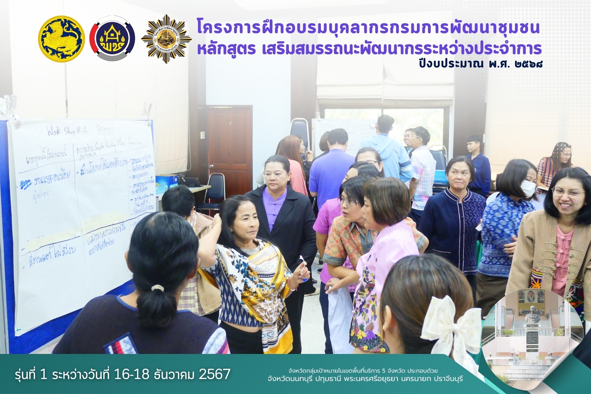 วันที่ 17 ธ.ค. 2567 เวลา 08.00 น. นางสาวณัฐนิช อินทสระ ผู้ตรวจราชการกรม ปฏิบัติหน้าที่ ผู้อำนวยการศูนย์ศึกษาและพัฒนาชุมชนนครนายก มอบหมายให้เจ้าหน้าที่ศูนย์ฯ ดำเนินโครงการฝึกอบรมบุคลากรกรมการพัฒนาชุมชน หลักสูตรเสริมสมรรถนะพัฒนากรระหว่างประจำการ กิจกรรมที่ 2 ฝึกอบรมบุคลากรกรมการพัฒนาชุมชน หลักสูตรเสริมสมรรถนะพัฒนากรระหว่างประจำการ รุ่นที่ 1 ระหว่างวันที่ 16 – 18 ธันวาคม 2567 ณ ศูนย์ศึกษาและพัฒนาชุมชนนครนายก กลุ่มเป้าหมายที่เข้ารับการอบรมเป็นพัฒนากร ในเขตพื้นที่ให้บริการของ ศพช.นครนายก 5 จังหวัด ประกอบด้วย จังหวัดปราจีนบุรี ปทุมธานี พระนครศรีอยุธยา นนทบุรี และนครนายก รวมทั้งสิ้น 80 คน