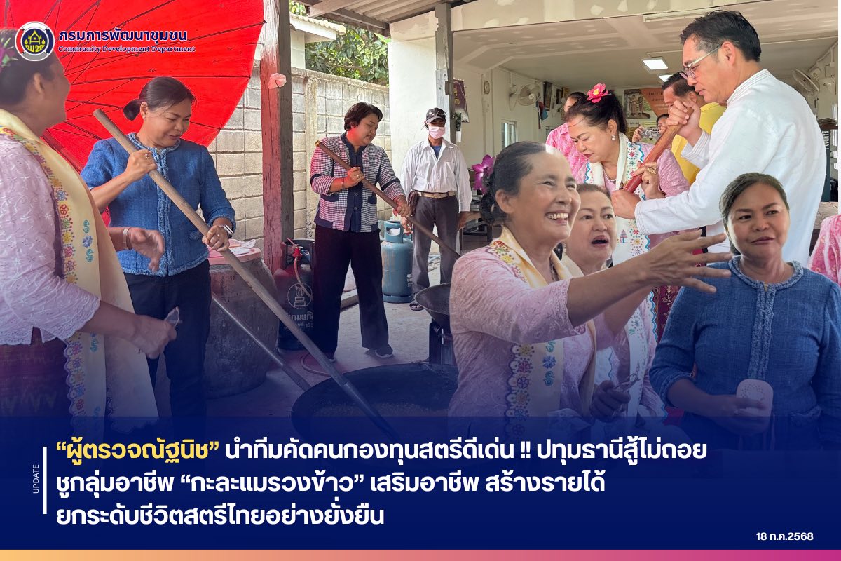 “ผู้ตรวจณัฐนิช” คัดคนกองทุนสตรีดีเด่น!! ปทุมธานีสู้ไม่ถอย ชูกลุ่มอาชีพ “กะละแมรวงข้าว” เสริมอาชีพ สร้างรายได้ ยกระดับชีวิตสตรีไทยอย่างยั่งยืน