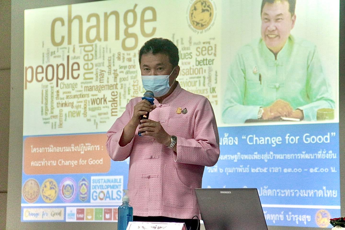 วันที่ 6 ก.พ. 2565 ศูนย์ศึกษาและพัฒนาชุมชนนครนายก ให้การสนับสนุนทีมวิทยากร และพื้นที่การฝึกอบรม โครงการฝึกอบรมเชิงปฏิบัติการ: คณะทำงาน Change for Good ของกระทรวงมหาดไทย หลักสูตร “ผู้นำการขับเคลื่อนตามหลักปรัชญาของเศรษฐกิจพอเพียงสู่เป้าหมายการพัฒนาที่ยั่งยืน” สถาบันดำรงราชานุภาพ สำนักงานปลัดกระทรวงมหาดไทย ดำเนินการระหว่างวันที่ 6- 9 ก.พ. 2565 จำนวน 46 คน