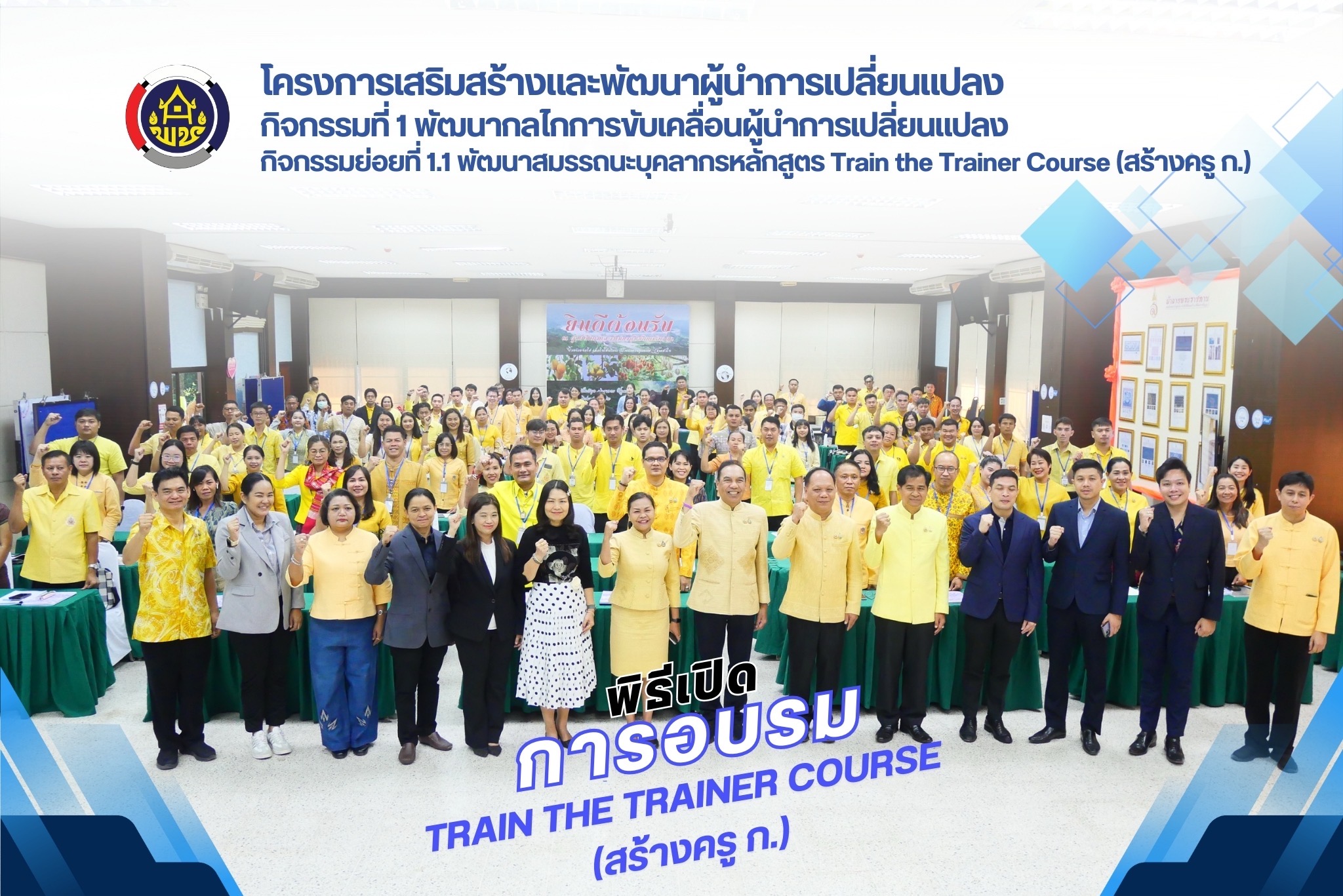 รองอธิบดี พช. เป็นประธานในพิธีเปิดโครงการเสริมสร้างและพัฒนาผู้นำการเปลี่ยนแปลง กิจกรรมที่ 1 พัฒนากลไกการขับเคลื่อนผู้นำการเปลี่ยนแปลง กิจกรรมย่อยที่ 1.1 พัฒนาสมรรถนะบุคลากรหลักสูตร Train the Trainer Course (สร้างครู ก)