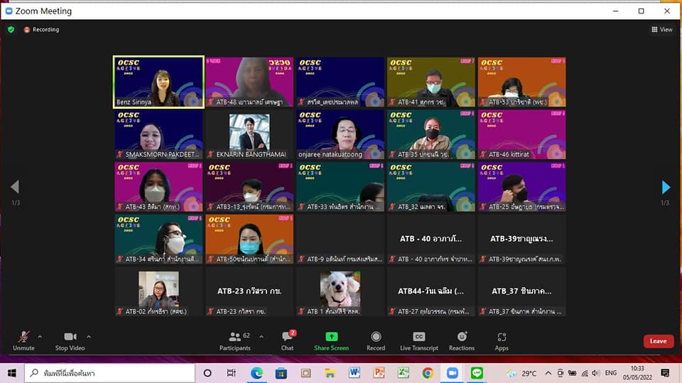 วันที่ 5 พ.ค. 2565 เวลา 09.00 – 16.00 น. นางสาวเยาวมาลย์ เศรษฐา ผู้อำนวยการศูนย์ศึกษาและพัฒนาชุมชน เข้าร่วมอบรมเชิงปฏิบัติการหลักสูตร Active Trainer Building รุ่นที่ 2/2565 ผ่านระบบสื่ออิเล็กทรอนิกส์ (Zoom Cloud Meeting) ซึ่งดำเนินการอบรมโดย สำนักงาน ก.พ. ระยะเวลาอบรมระหว่างวันที่ 3-18 พฤษภาคม 2565 รวม 6 วัน แบบไม่ต่อเนื่อง ในรูปแบบการเรียนรู้แบบผสมผสาน (Blended Learning) เรียนรู้การจัดทำหลักสูตร การสร้างสื่อนำเสนอ และการใช้ประโยชน์เครื่องมือทางเทคโนโลยีเพื่อนำกิจกรรมการพัฒนาบุคลากร