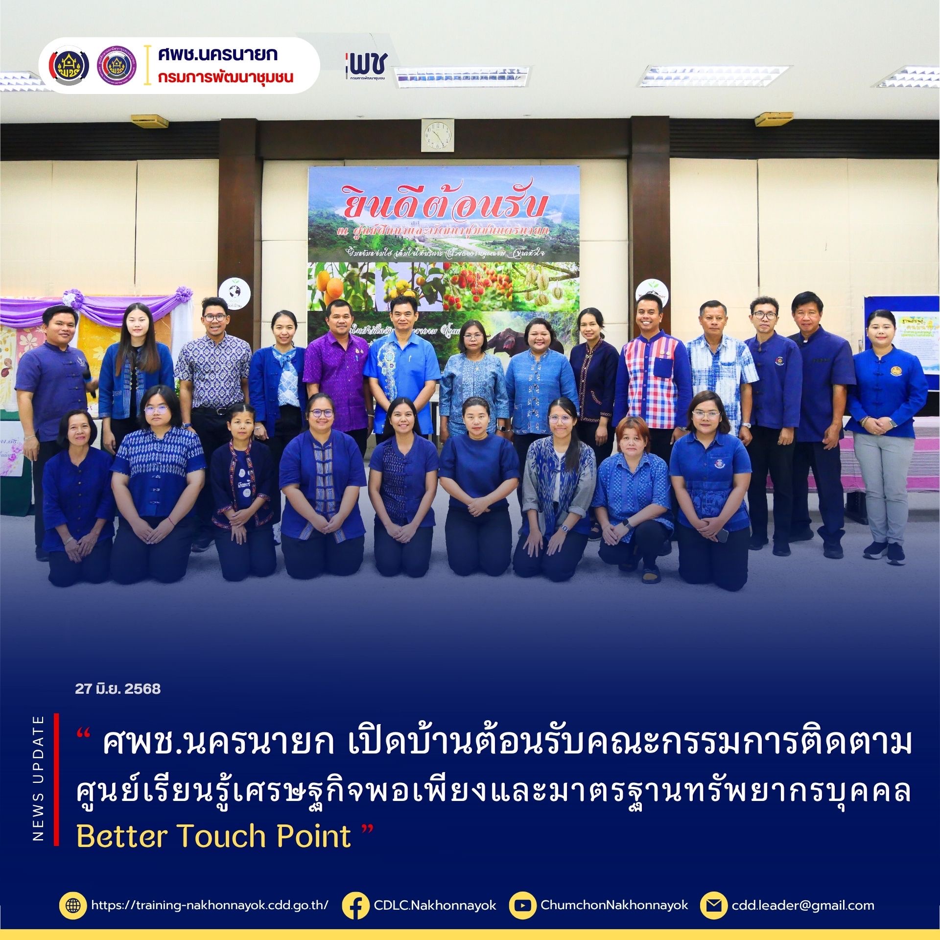 วันที่ 27 มิถุนายน 2568 ณ ศูนย์ศึกษาและพัฒนาชุมชนนครนายก