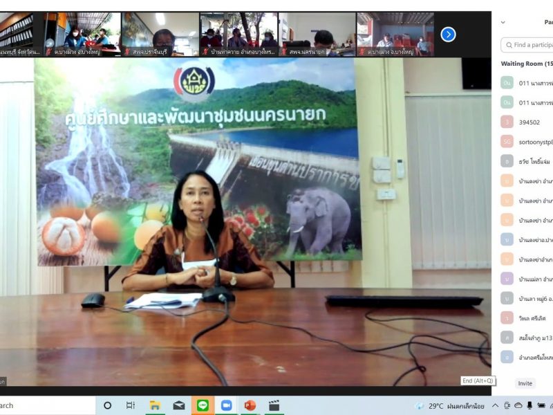ศพช.นครนายก ฝึกอบรมโครงการสร้างอาชีพสร้างความมั่นคงทางอาหาร สร้างภูมิคุ้มกัน โควิด-19 ผ่านระบบประชุมออนไลน์ (Zoom Cloud Meeting) โดยบูรณาการกับโครงการสร้างผู้นำการเปลี่ยนแปลง ขยายผลจากบ้านพี่ สู่เมืองน้อง และกิจกรรมฝึกอบรม 108 อาชีพแก้จน พัฒนาคนทุกช่วงวัย มีผู้เข้าอบรมทั้งสิ้น 228 คน