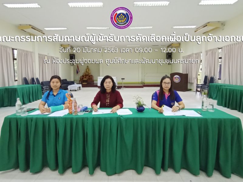 ศูนย์ศึกษาและพัฒนาชุมชนนครนายก ดำเนินการสัมภาษณ์ผู้เข้ารับการคัดเลือกเพื่อเป็นลูกจ้างเอกชนดำเนินงานของส่วนราชการ