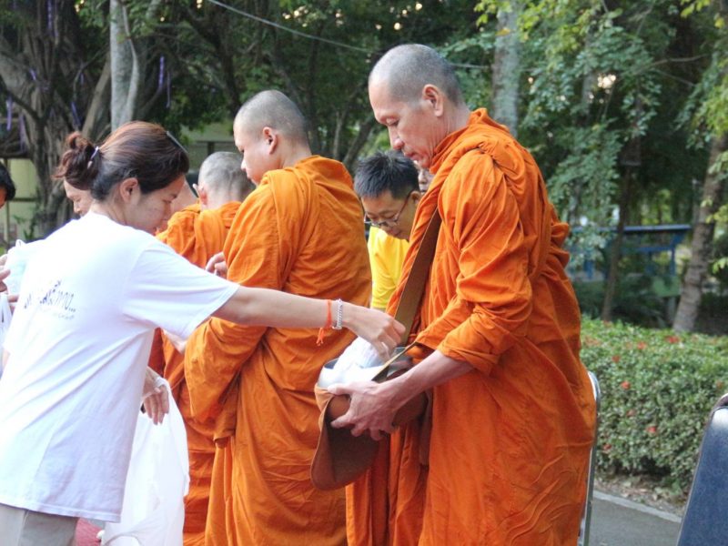 พิธีทำบุญตักบาตร ข้าวสารอาหารแห้ง แด่พระภิกษุสงฆ์ จากวัดตำหนัก
