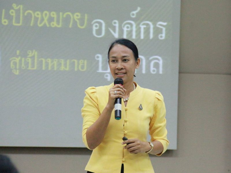 นางประภา ปานนิตยกุล ผอ.ศูนย์ศึกษาและะพัฒนาชุมชนนครนายก บรรยายหัวข้อOKRs การตั้งเป้าหมายองค์กร