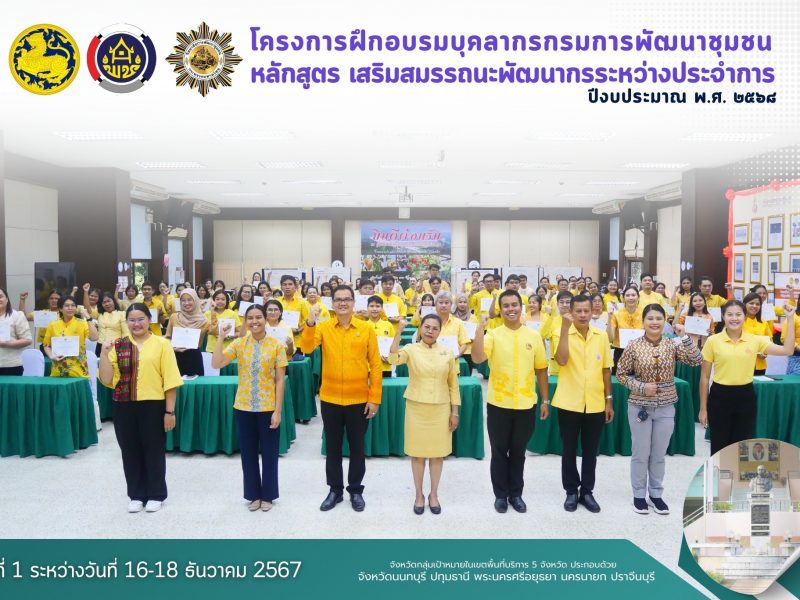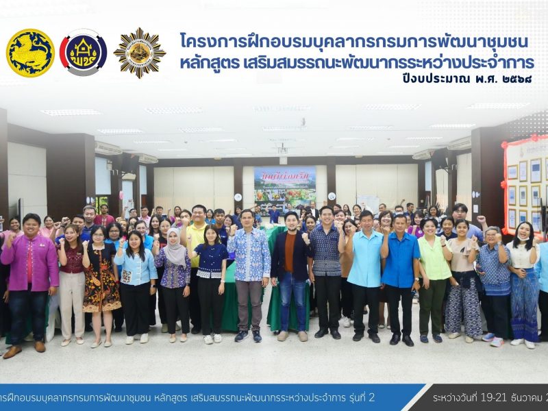 ศพช.นครนายก จัดฝึกอบรมบุคลากรกรมการพัฒนาชุมชน หลักสูตร “เสริมสมรรถนะพัฒนากรระหว่างประจำการ” รุ่นที่ 1