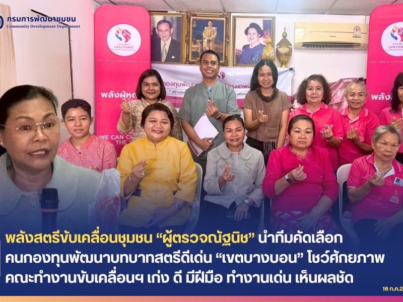 พลังสตรีขับเคลื่อนชุมชน “ผู้ตรวจณัฐนิช” นำทีมคัดเลือกคนกองทุนพัฒนาบทบาทสตรีดีเด่น “เขตบางบอน” โชว์ศักยภาพ คณะทำงานขับเคลื่อนฯ เก่ง ดี มีฝีมือ ทำงานเด่น เห็นผลชัด