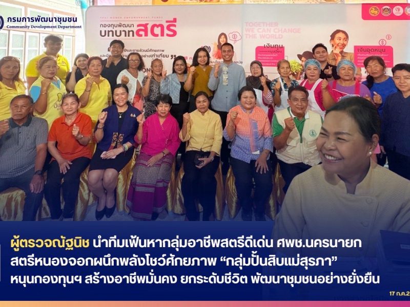 ผู้ตรวจณัฐนิช นำทีมเฟ้นหากลุ่มอาชีพสตรีดีเด่น สตรีหนองจอกผนึกพลังโชว์ศักยภาพ “กลุ่มปั้นสิบแม่สุรภา” หนุนกองทุนฯ สร้างอาชีพมั่นคง ยกระดับชีวิต พัฒนาชุมชนอย่างยั่งยืน