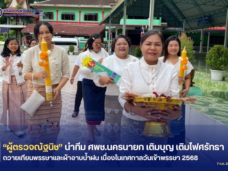 “ผู้ตรวจณัฐนิช” นำทีม ศพช.นครนายก เติมบุญ เติมไฟศรัทธา ถวายเทียนพรรษาและผ้าอาบน้ำฝน เนื่องในเทศกาลวันเข้าพรรษา 2568