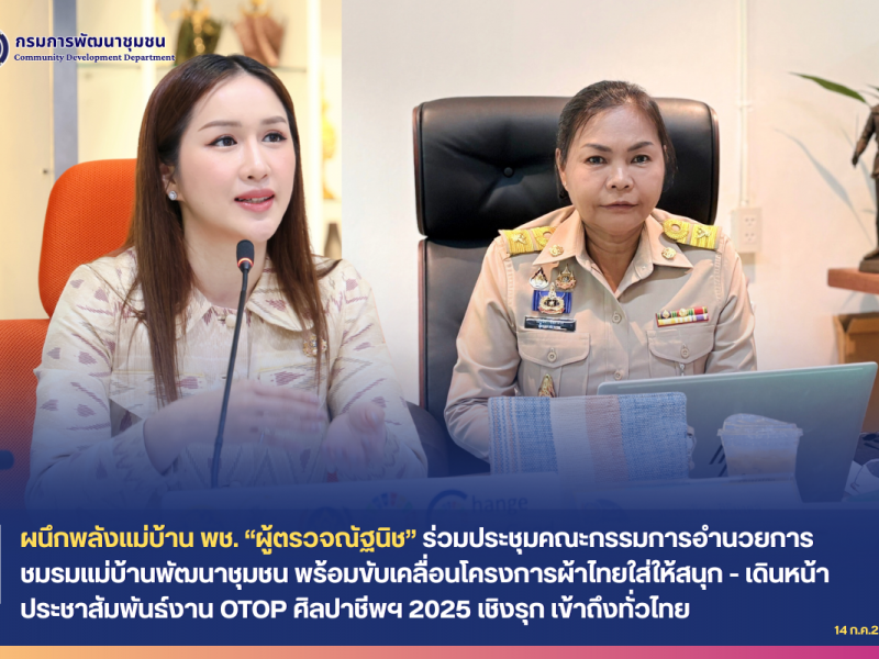 ผนึกพลังแม่บ้าน พช. “ผู้ตรวจณัฐนิช” ร่วมประชุมคณะกรรมการอำนวยการชมรมแม่บ้านพัฒนาชุมชน พร้อมขับเคลื่อนโครงการผ้าไทยใส่ให้สนุก – เดินหน้าประชาสัมพันธ์งาน OTOP ศิลปาชีพฯ 2025 เชิงรุก เข้าถึงทั่วไทย