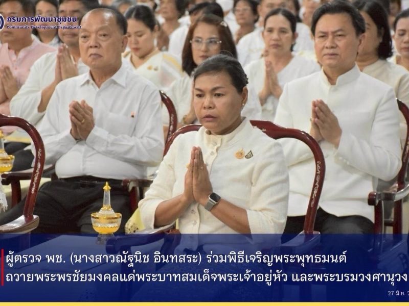 ผู้ตรวจ พช. (นางสาวณัฐนิช อินทสระ) ร่วมพิธีเจริญพระพุทธมนต์ถวายพระพรชัยมงคลแด่พระบาทสมเด็จพระเจ้าอยู่หัว และพระบรมวงศานุวงศ์
