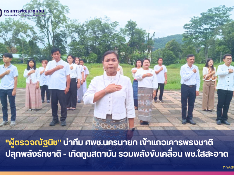 “ผู้ตรวจณัฐนิช” นำทีม ศพช.นครนายก เข้าแถวเคารพธงชาติ ปลุกพลังรักชาติ – เทิดทูนสถาบัน รวมพลังขับเคลื่อน พช.ใสสะอาด