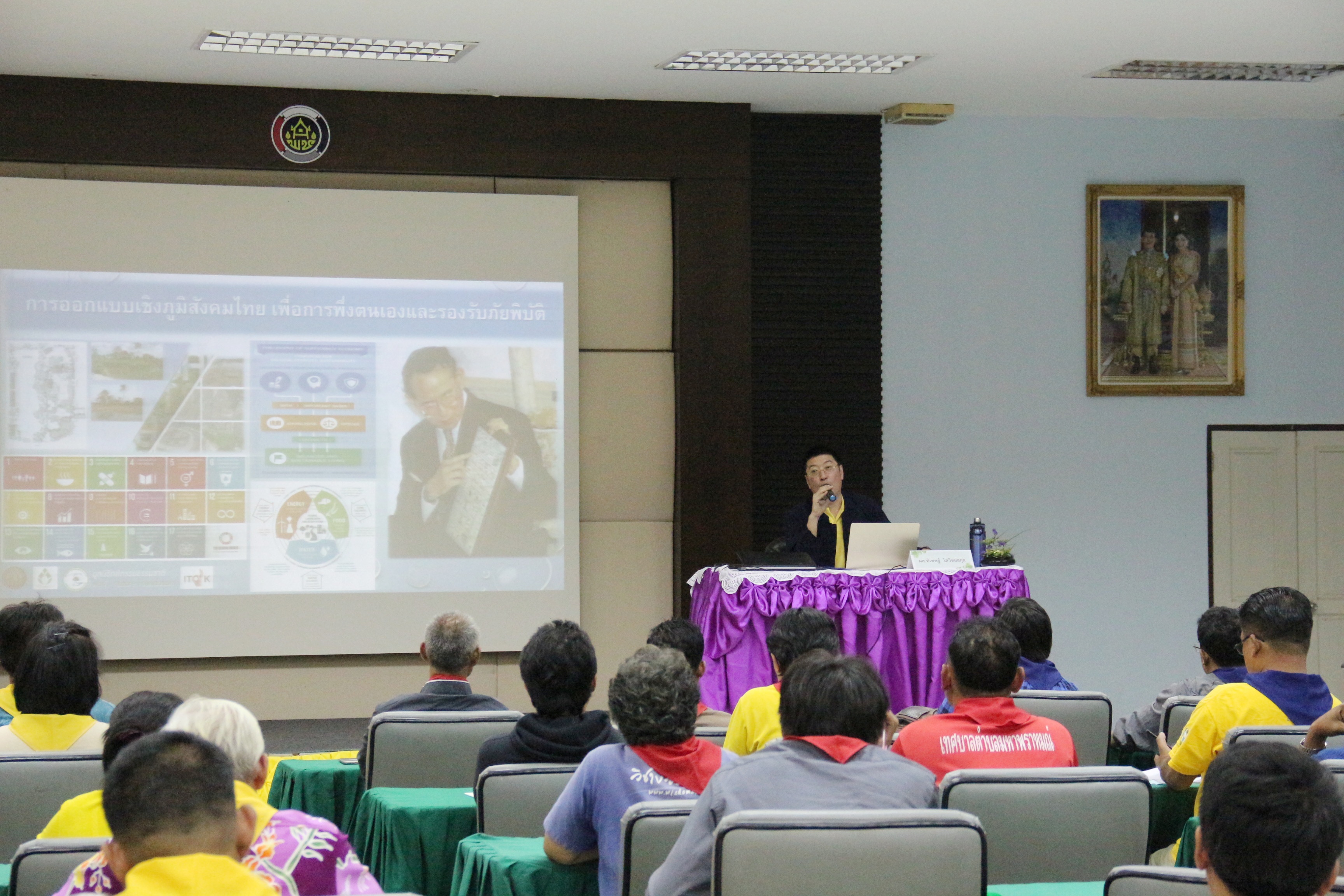 … ช่วงบ่าย ผู้เข้าอบรมรับฟังการบรรยาย หัวข้อ การออกแบบเชิงภูมิสังคมไทยตามแนวพระราชดำริ / การวิเคราะห์พื้นที่เพื่อการพัฒนาตามแนวพระราชดำริ โดย ผศ.พิเชฐ โสวิทยสกุล คณบดี คณะสถาปัตยกรรมศาสตร์สถาบันเทคโนโลยีพระจอมเกล้าเจ้าคุณทหารลาดกระบัง